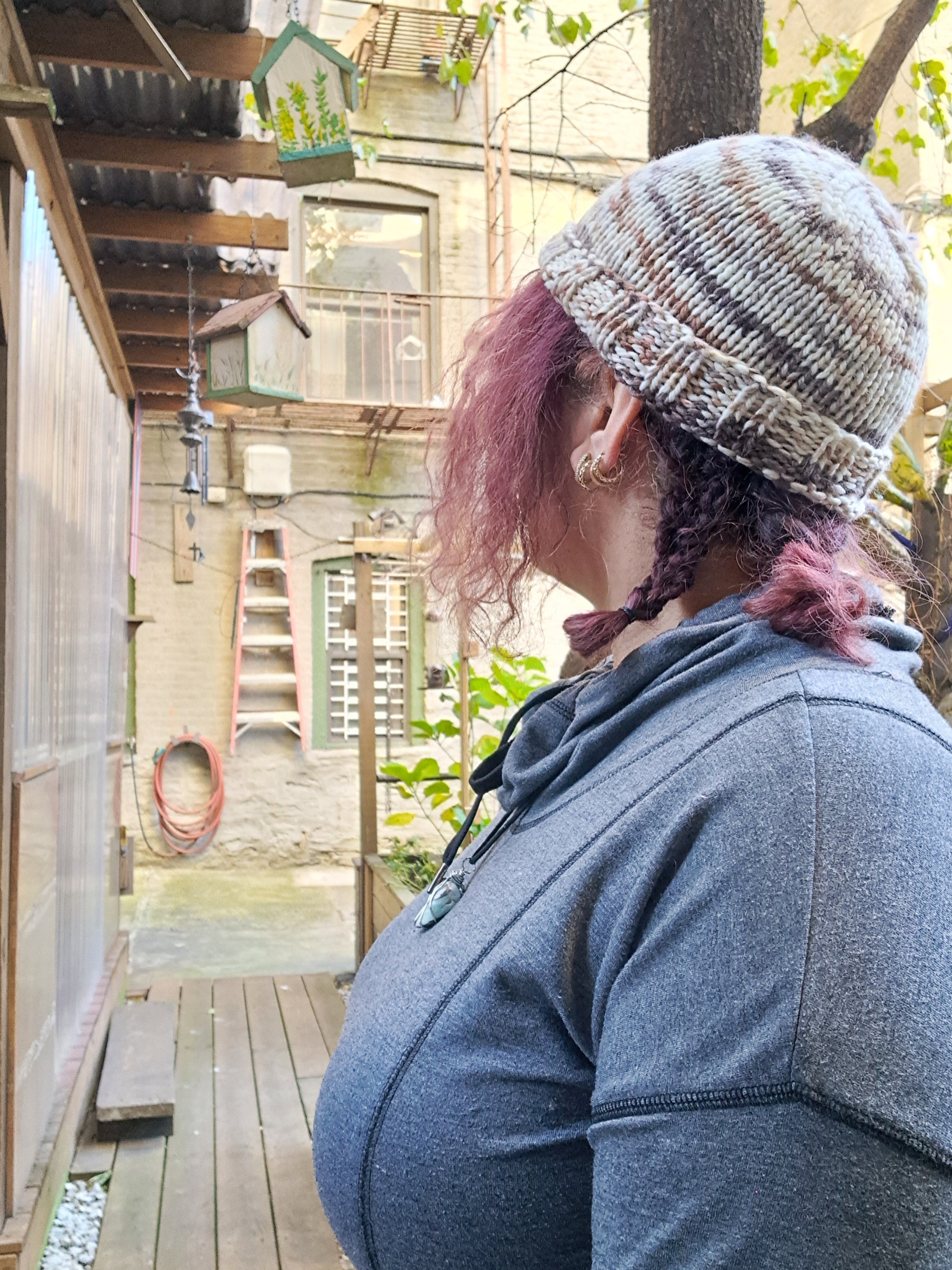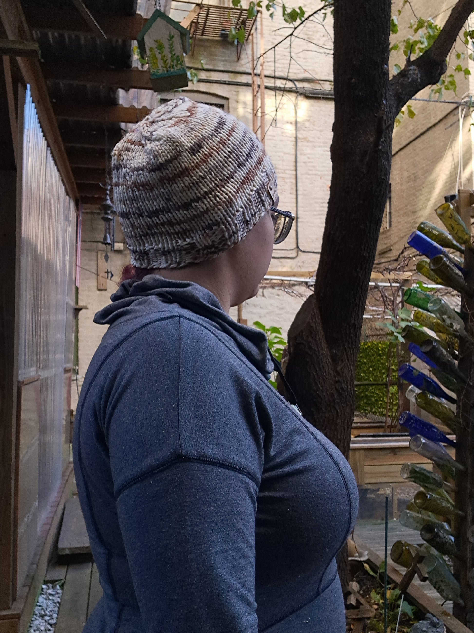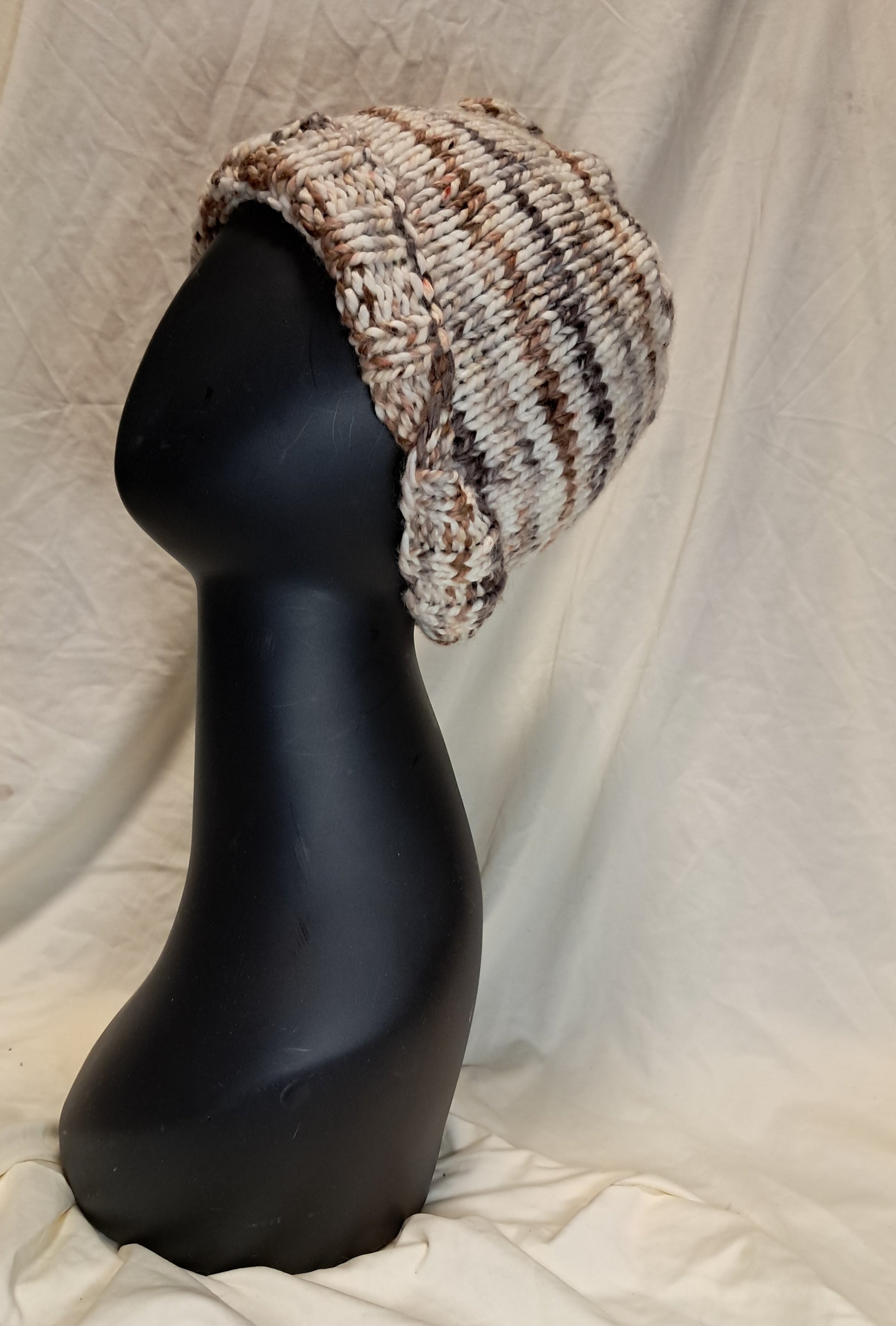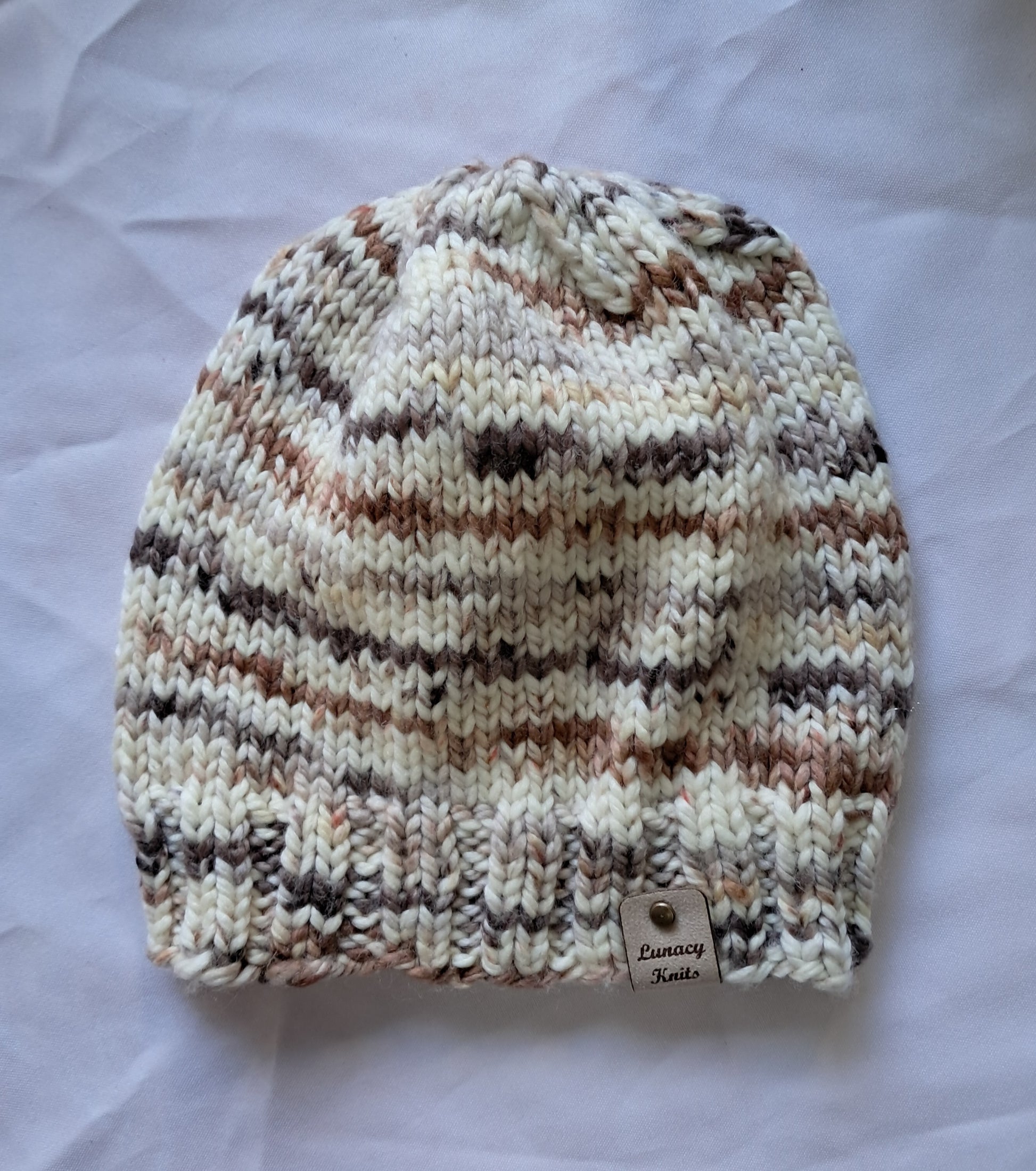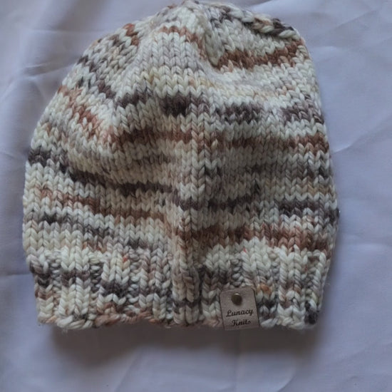 Like with anything cookies 'n cream this hat is a blend of browns and soft whites. There is a swirl to the colors adding to the uniqueness of this beanie.