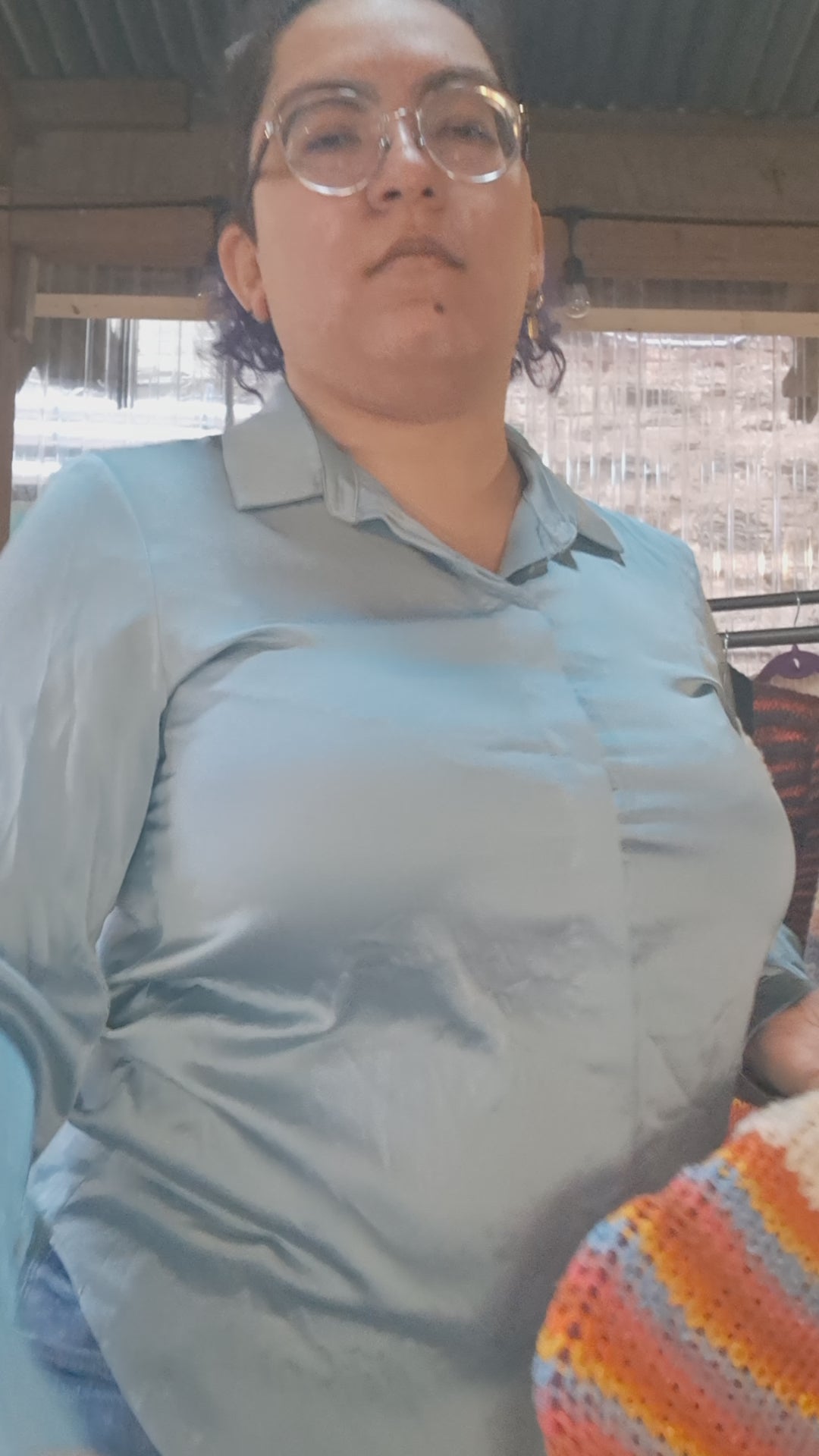 This soft and cozy Sweater is great for winter cold weather. The body is done with a bulky Acrylic yarn that's soft to the touch. With the edges are done with a fluffy blended yarn that make is feel like you're wearing a cloud.