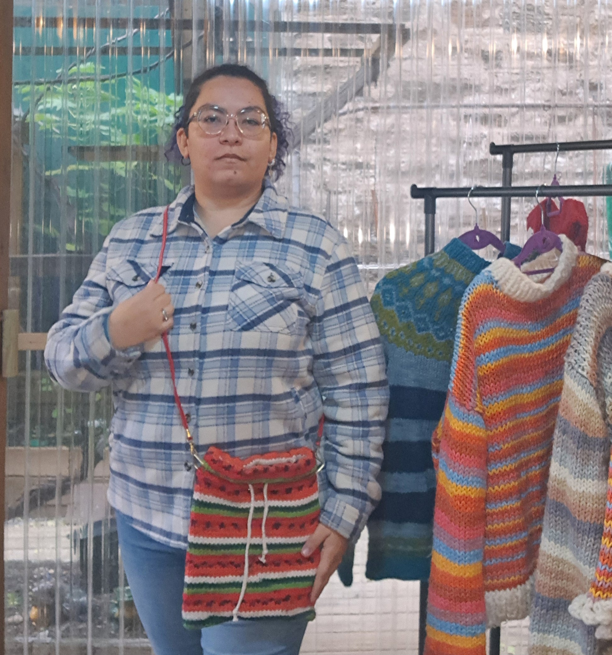 The bag is big enough to fit most common items, phone, wallet, glasses and keys with some room to spare. The yarn creates a Watermelon pattern hence the name.